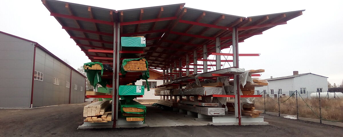 Zpracovatel dřeva Borovi spoléhá na konzolové regály se střechou od společnosti OHRA, aby mohl efektivně skladovat své dřevěné výrobky chráněné před povětrnostními vlivy. Díky robustní konstrukci a krytému skladování zůstávají materiály suché a vždy připravené k použití. Flexibilní struktura regálů umožňuje optimální využití prostoru a snadnou manipulaci.
