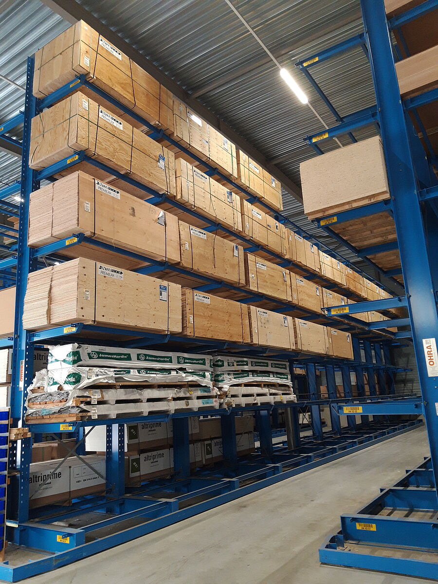 4PLUS Bouwmaterialen B.V., nákupní organizace v nizozemském Bornu, k níž patří 59 samostatných prodejců stavebnin, více než zdvojnásobila kapacitu svého centrálního skladu použitím konzolových regálů od společnosti OHRA. Zatímco až doposud ležel stavební materiál - jako jsou dřevěné latě, trámy nebo desky pro montáže zasucha stohován v blocích na podlaze skladištní haly, lze nyní plně využít výšku haly vysoké cca 10 metrů, a to díky regálům vysokým 8 470 mm. Nejenže tím vzniklo více místa pro skladování, ale celkově se výrazně zjednodušila manipulace se stavebním materiálem, zvýšila se bezpečnost zaměstnanců skladu a minimalizovalo se poškození zboží.