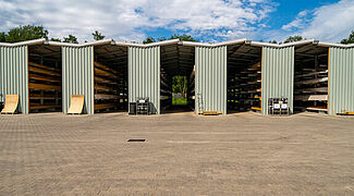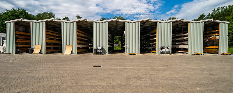 Firma Abies Polska se proto rozhodla nahradit skladování na zemi konzolovými regály. Společnost OHRA k tomu dodala celkem osm regálů, každý z nich vybavený šesti skladovacími úrovněmi. Nejhořejší úroveň se nachází ve výšce pěti metrů – tím lze výrazně lépe využít disponibilní plochu venkovního skladu. Regály, které nesou vždy jednu střechu po obou stranách přečnívající o 2,7 metru, jsou sestaveny tak, že se střechy překrývají. Dodatečnou ochranu zajišťuje opláštění vnějších stěn, které bylo podle zadání stavebního úřadu provedeno z vysoce kvalitních plechů. Regálová sestava tudíž tvoří samostatnou, velmi kvalitní budovu.