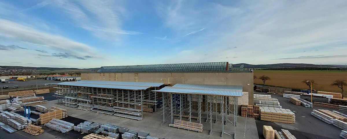 Regálové řešení optimalizované pro své požadavky nalezla společnost ALBIXON u výrobce OHRA: Tři řady konzolových regálů o výšce 7 300 milimetrů využívají dostupný prostor zcela optimálním způsobem. Zatížení na konzolový regál činí 500 kilogramů. Regálové stojany kromě toho nesou překrývající se části zastřešení, které je pokryto částečně průhledným PVC – to se stará o dobré osvětlení také ve spodních částech.