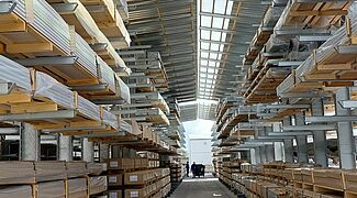 ALBIXON, jeden z předních výrobců bazénů a zastřešení pro bazény v Evropě, rozšířil své skladovací kapacity díky zastřešenému systému konzolových regálů OHRA. Zde jsou uskladněny paletované hliníkové profily; délka palet činí 5 až 12 metrů, hmotnost sahá od 500 do 1 200 kilogramů. S novým regálovým systémem lze nejen pokrýt potřebu materiálu rozšířené výroby, ale také zvýšit celkovou efektivitu skladování.