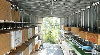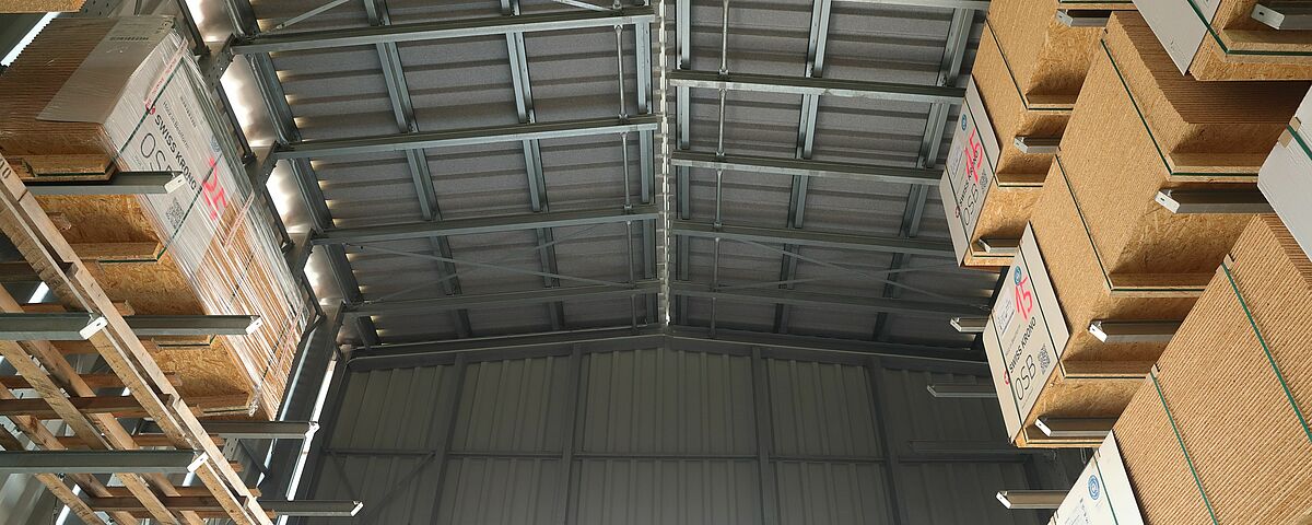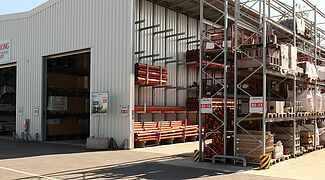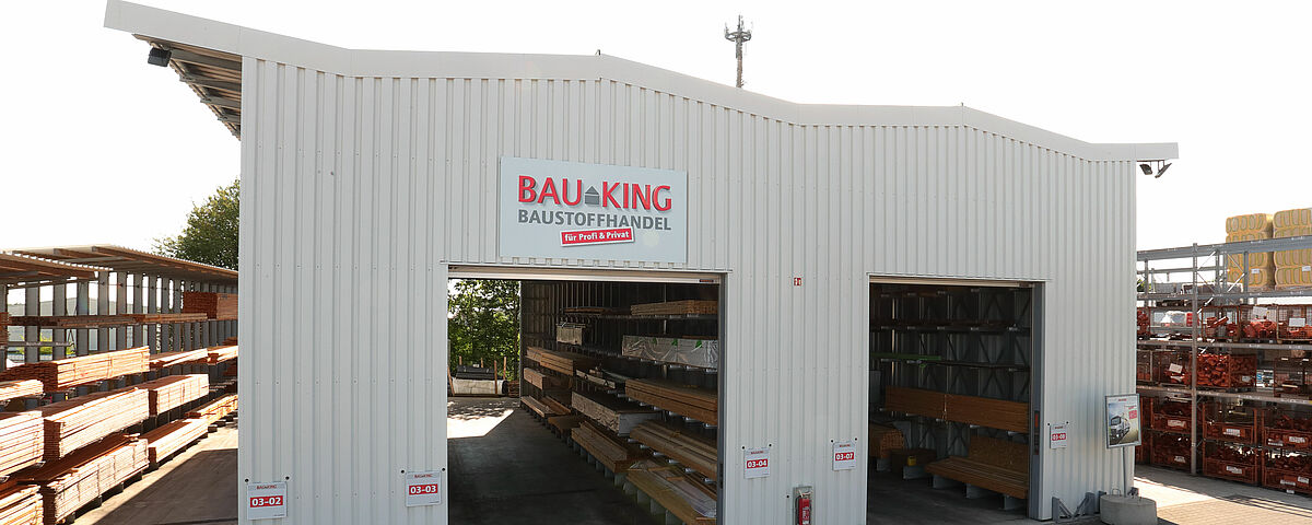 Aby měli zákazníci lepší přehled a rychlejší přístup k dřevěným produktům, rozhodl se prodejce BAUKING uskladnit veškeré dřevěné produkty v pobočce na jednom místě v nové centrální regálové hale. Taková regálová hala, u které fungují regály jako nosná konstrukce pro střechu i stěny, je výrazně flexibilnější a cenově výhodnější než klasická skladovací hala. BAUKING naplánoval halu, která je postavena ze tří konzolových řad, z nichž každá má na délku přibližně 20 metrů. Konzolové regály o výšce více než 7,8 metru jsou vybaveny vždy sedmi skladovacími úrovněmi.
