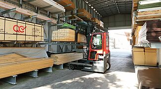 Nová regálová hala pro dřevěné produkty umožňuje v pobočce BAUKING Lorup výrazně efektivnější logistické procesy. Zákazníci mají přístup k větší produktové nabídce; takže takto lze nyní zcela snadno uskladnit i zboží o délce až 13 metrů. Díky centrálnímu uskladnění všech dřevěných produktů v jednom systému konzolových regálů dostanou zákazníci požadované zboží velmi rychle.