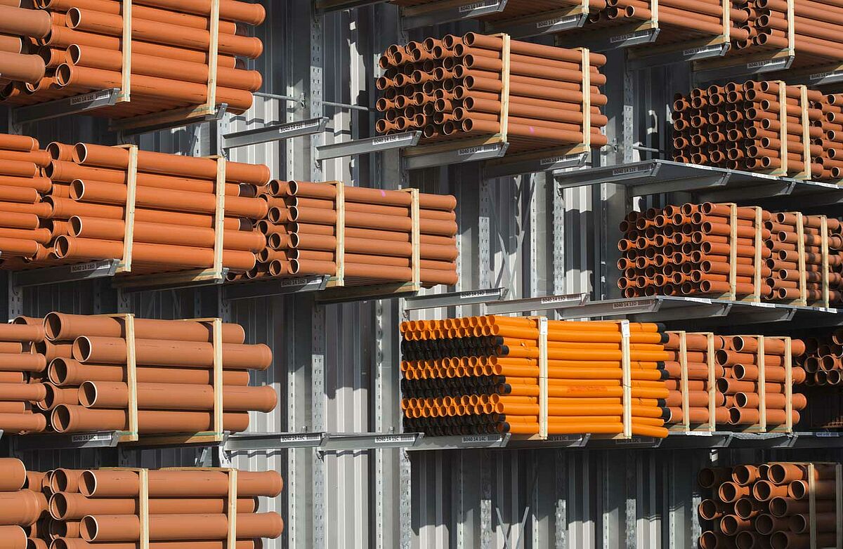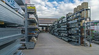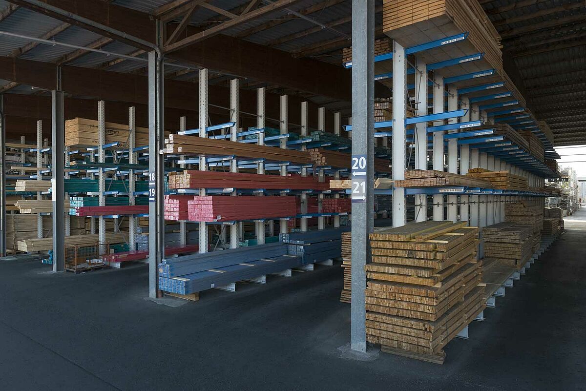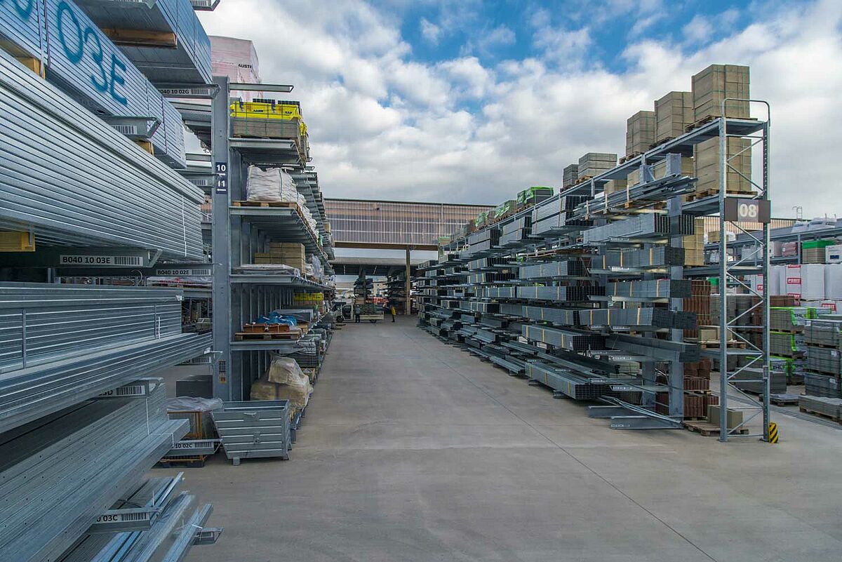 Také měl být optimalizován i stávající sklad: Neslouží pouze k zásobování zákazníků, ale jsou odsud zásobovány dřevem a stavebními materiály i čtyři další pobočky. V rámci restrukturalizace se společnost Beinbrech rozhodla nahradit stávající regálová zařízení novými konzolovými regály. S výškou stojanů až 6,58 metrů jsou značně vyšší než staré regály a nabízejí tak více místa. Díky tomu lze rychle vychystávat všechny náhlé a neočekávané objednávky a zajišťovat i velké objemy.