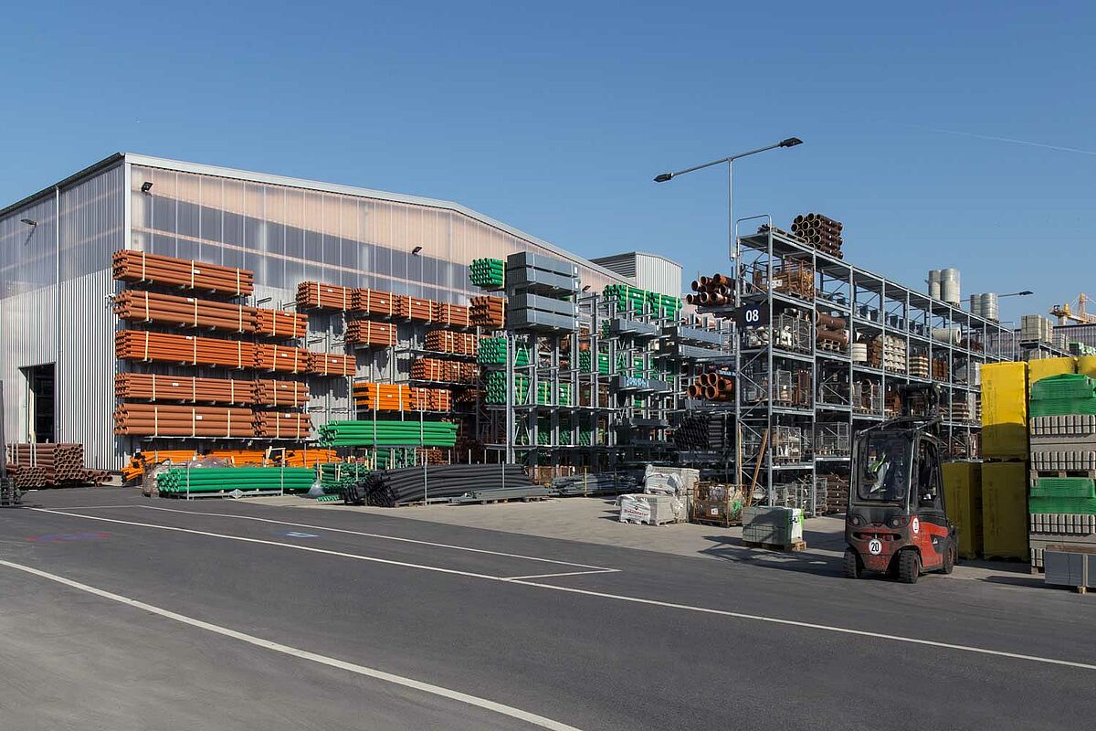 Pro své obchodní zákazníky se Beinbrech, s provozní a skladovací plochou cca 100 000 m2 a vysoce výkonným logistickým konceptem, řadí k jednomu z nejsilnějších velkoprodejců na poli dřeva a stavebních materiálů v regionu. Aby to tak zůstalo, firma se rozhodla restrukturalizovat celý provoz: Byly rozšířeny prodejní, výstavní a skladovací plochy, optimalizován zákaznický servis, spojeny nakládací zóny a rozšířeny překládací plochy.