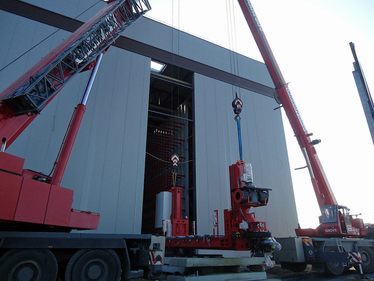 Se stavbou 20 metrů vysoké budovy bylo započato v červnu 2011, podstatná část konstrukce budovy s podlahovou deskou, opláštěním a zastřešením byla dohotovena koncem 2012. Montáž regálových elementů vážících celkem přes 900 tun byla spuštěna v lednu 2012 a dohotovena byla po čtyřech měsících. V únoru 2012 bylo instalováno první RBG; v dubnu proběhlo jejich uvedení do provozu.