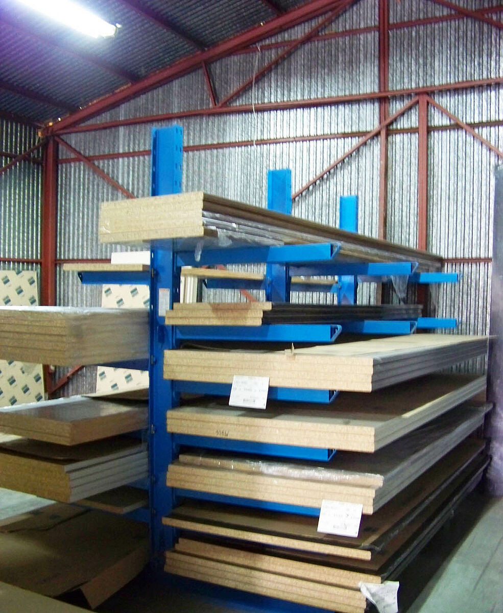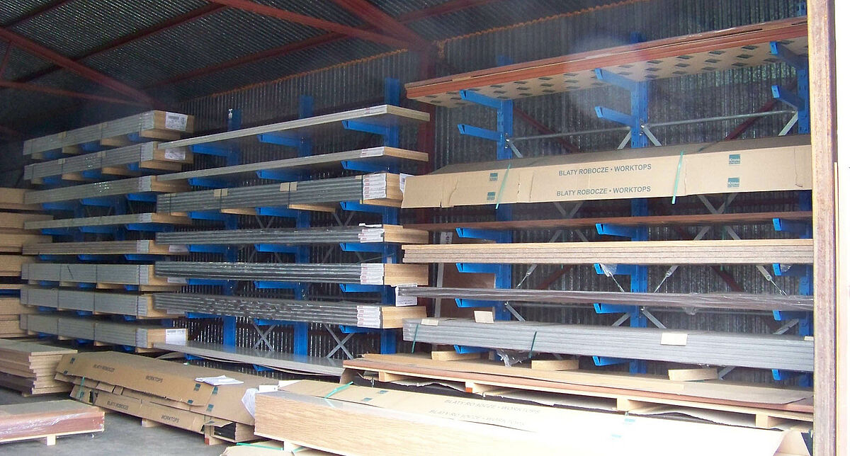 Konzolové a paletové regály pro uskladnění dřevotřískových a pracovních desek