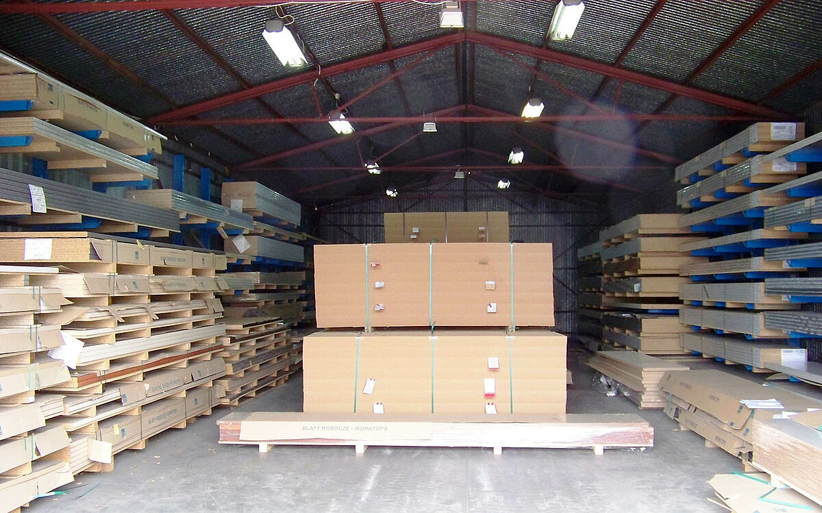 K optimálnímu využití skladovací plochy vybavila polská firma Damar své sklady konzolovými a paletovými regály od firmy OHRA. Regálové systémy umožňují nejenom přehledné skladování dřevotřískových, OSB a kuchyňských pracovních desek, ale jsou i flexibilně konfigurovatelné – je možné je tak přizpůsobit měnícím se skladovacím podmínkám a současně i individuálně na měnící se situaci v budově.