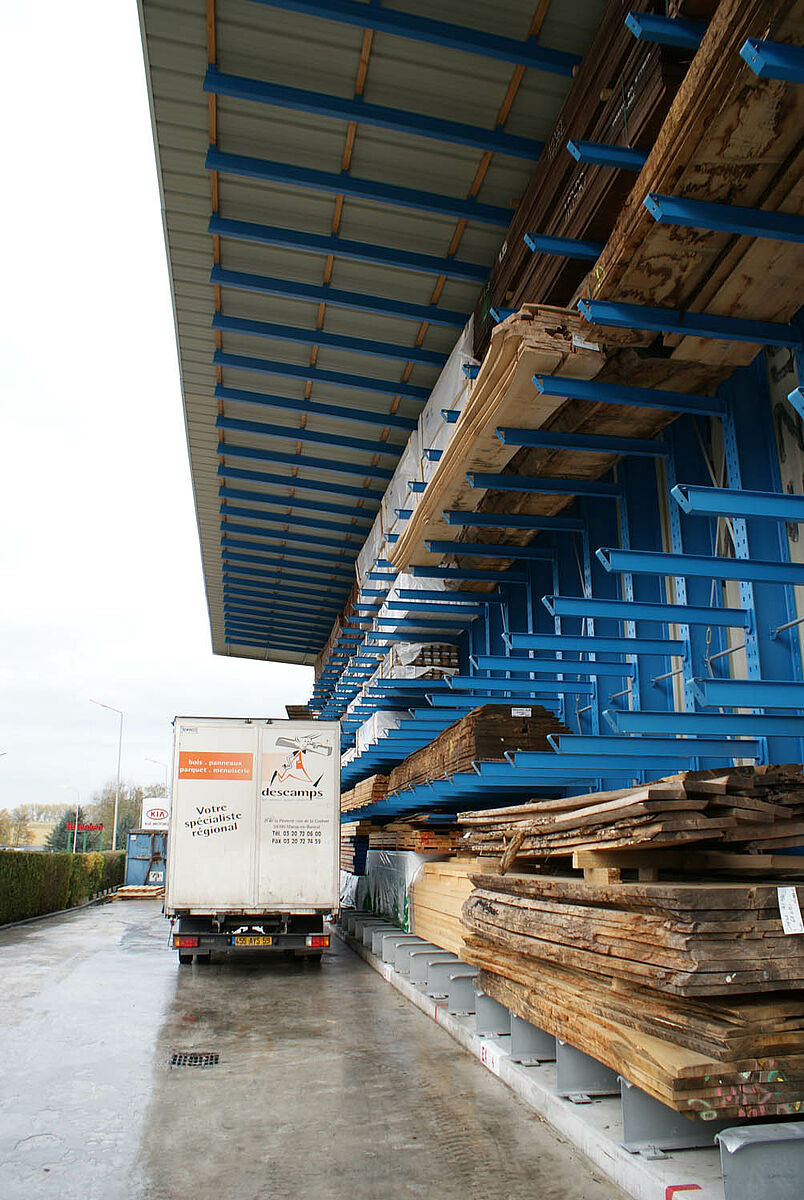 Při řešení problému se skladováním měl zákazník na vybranou jen mezi konvenčním skladem a regálovým skladem od OHRA. S ohledem na uvedené požadavky se firma Descamps rozhodla pro řešení od firmy OHRA. Touto variantou se realizovalo nejen vlastní zastřešení, ale také dodatečné skladovací kapacity. Použitím robustních konzolových regálů mohla být využita i venkovní strana zastřešené haly jako sklad pro výrobky, které vyžadují malou nebo žádnou ochranu před povětrnostními vlivy. Tyto výrobky byly do té doby skladovány v jiné budově.