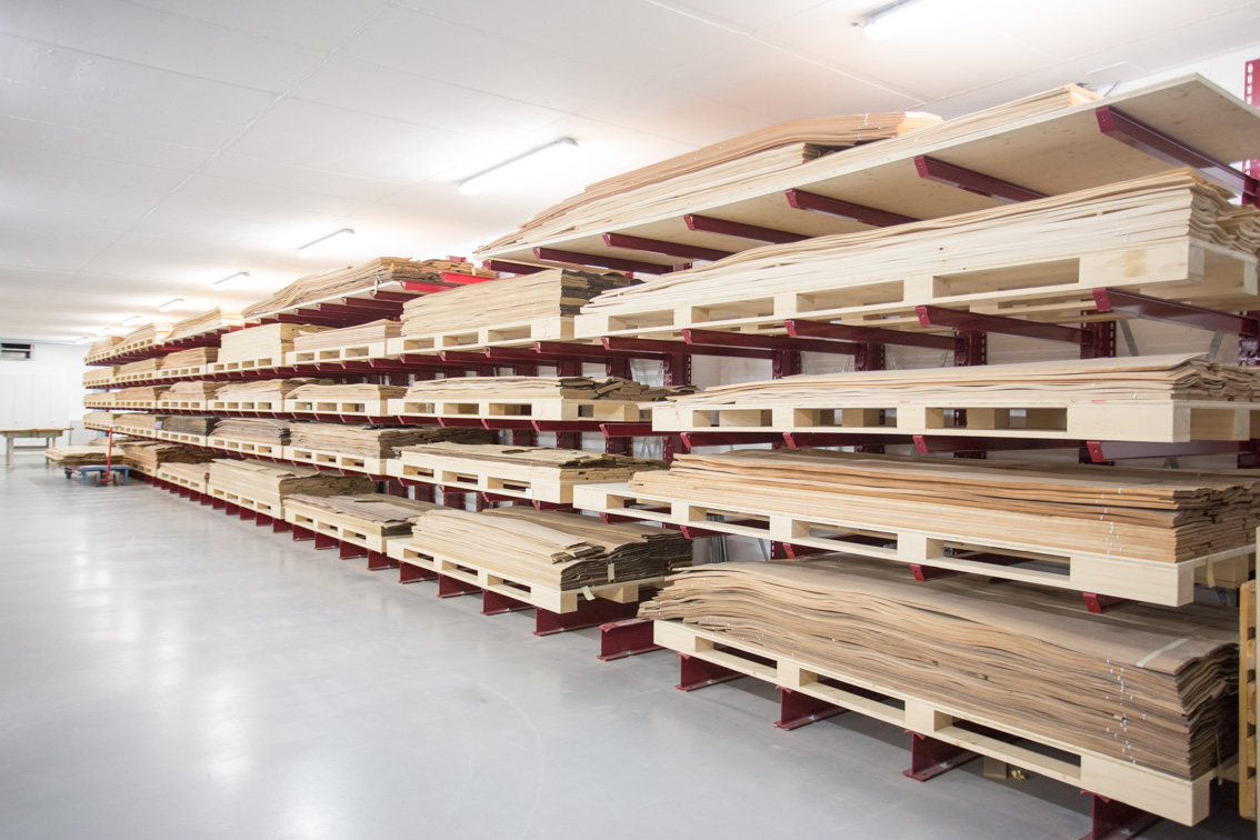 Automatický sklad o délce 40 metrů s jednou uličkou nabízí místo pro různé materiály desek pro vnitřní výstavbu a truhlářskou dílnu. Sklad se rozprostírá přes dvě podlaží, uskladnění se provádí bočně prostřednictvím druhého podlaží. Balíky desek pro technologie suché výstavby, balíky středně tvrdých vláknitých desek, dřevotřískových nebo sendvičových desek o váze až 4 tuny se skladují ve dvou jednostranných konzolových regálech, nejvyšší z devíti regálových úrovní se nachází ve výšce 7,5 metrů, maximální hloubka skladování činí 2 500 milimetrů.