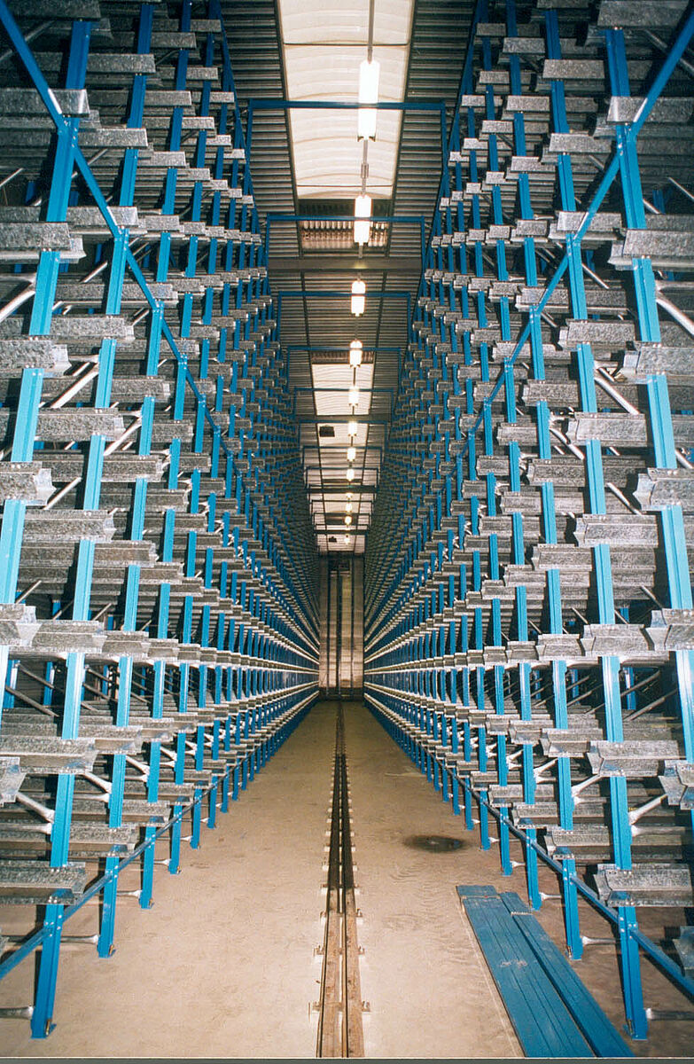 Tři regálová zařízení regulují odpovídající skladová místa za pomoci automaticky počítačem řízené správy s lineárním pojezdem. Kompletace provádí manuálně pracovníci skladu. Takto je možné kompletovat až čtyři zakázky současně.
