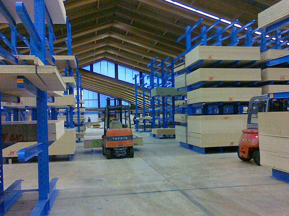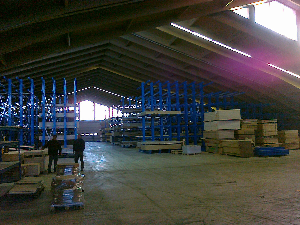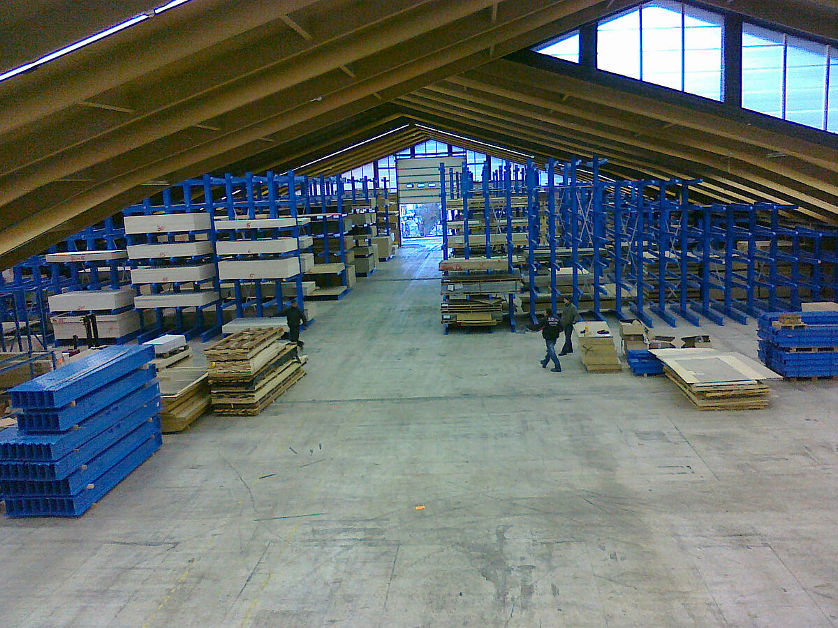 Přitom musela být zohledněna jedna zvláštnost: Nový sklad byl integrován do existují haly, sloužící dříve k prodeji stavebních materiálů, jejíž sedlová střecha klesala relativně rychle dolů. Díky modulární skladbě OHRA konzolového regálu mohla být přesto k dispozici stojící výška optimálně využita: Výška regálů začíná na vnější stěně haly se 3 metry a zvyšuje se postupně ve středu haly až na regálovou výšku 6 metrů. Při maximální výšce je namontováno sedm regálových pater. Cirka 800 skladových míst obsluhují elektrické vysokozdvižné vozíky.