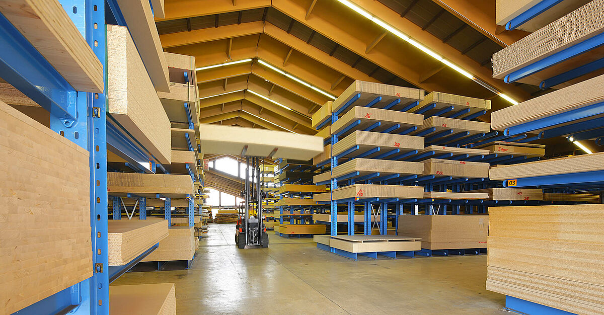 V novém odbytovém centrum od Gitsche se skladují dýhy, dřevo, dřevěné materiály a desky v rozměrech od 250 x 125 centimetrů až do 560 x 210 centimetrů. Firma vyměnila již dříve regálové systémy používané v sídle firmy za OHRA konzolové regály. Přesvědčená vysokou kvalitou regálů vyráběných z konstrukčních, za tepla válcovaných ocelí, vybavila firma obchodující se dřevem s OHRA regály i nové odbytové centrum.