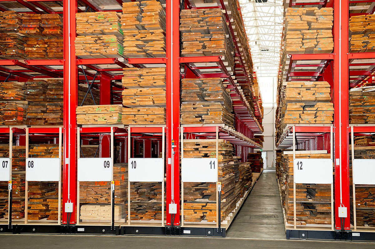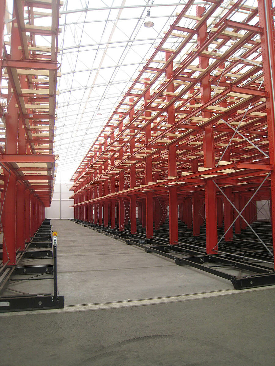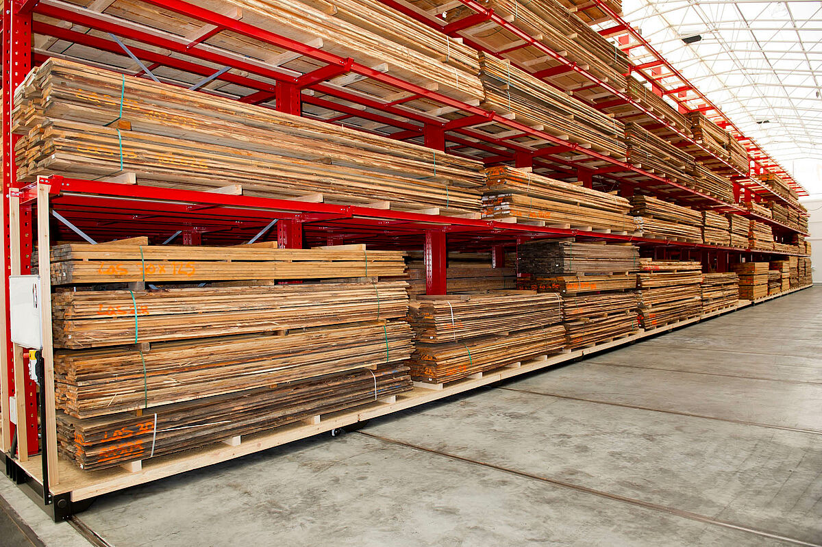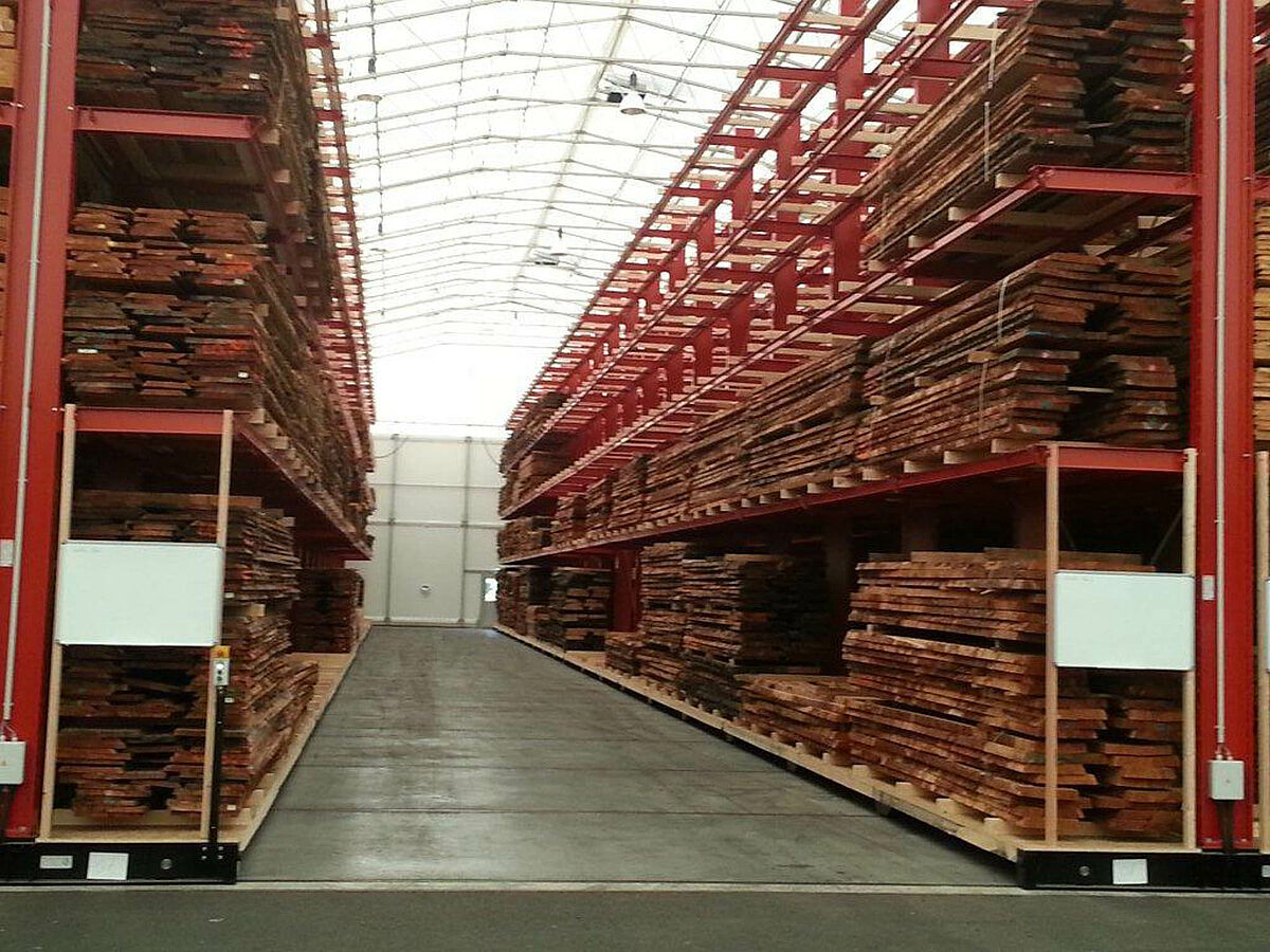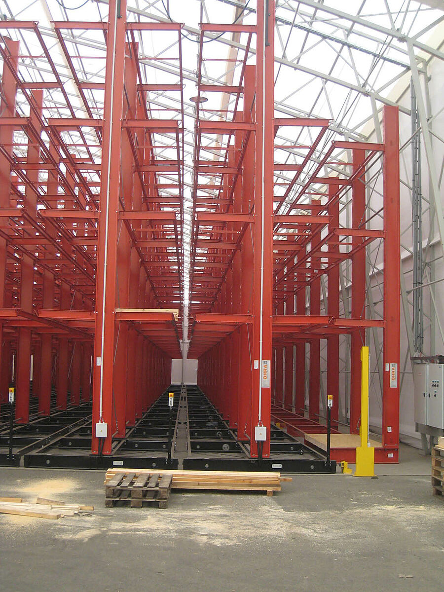 Firma M. Hechenblaickner Holzhandelsgesellschaft, vůdčí firma na trhu se dřevem v jižním Rakousku, zdvojnásobila konzolovými regály firmy OHRA kapacitu svého centrálního skladu v Grazu. K tomu jsou regály namontovány na pojízdných podvozcích - pro stohovač se otevře vždy pouze ta ulička, ze které má být odebráno zboží.
