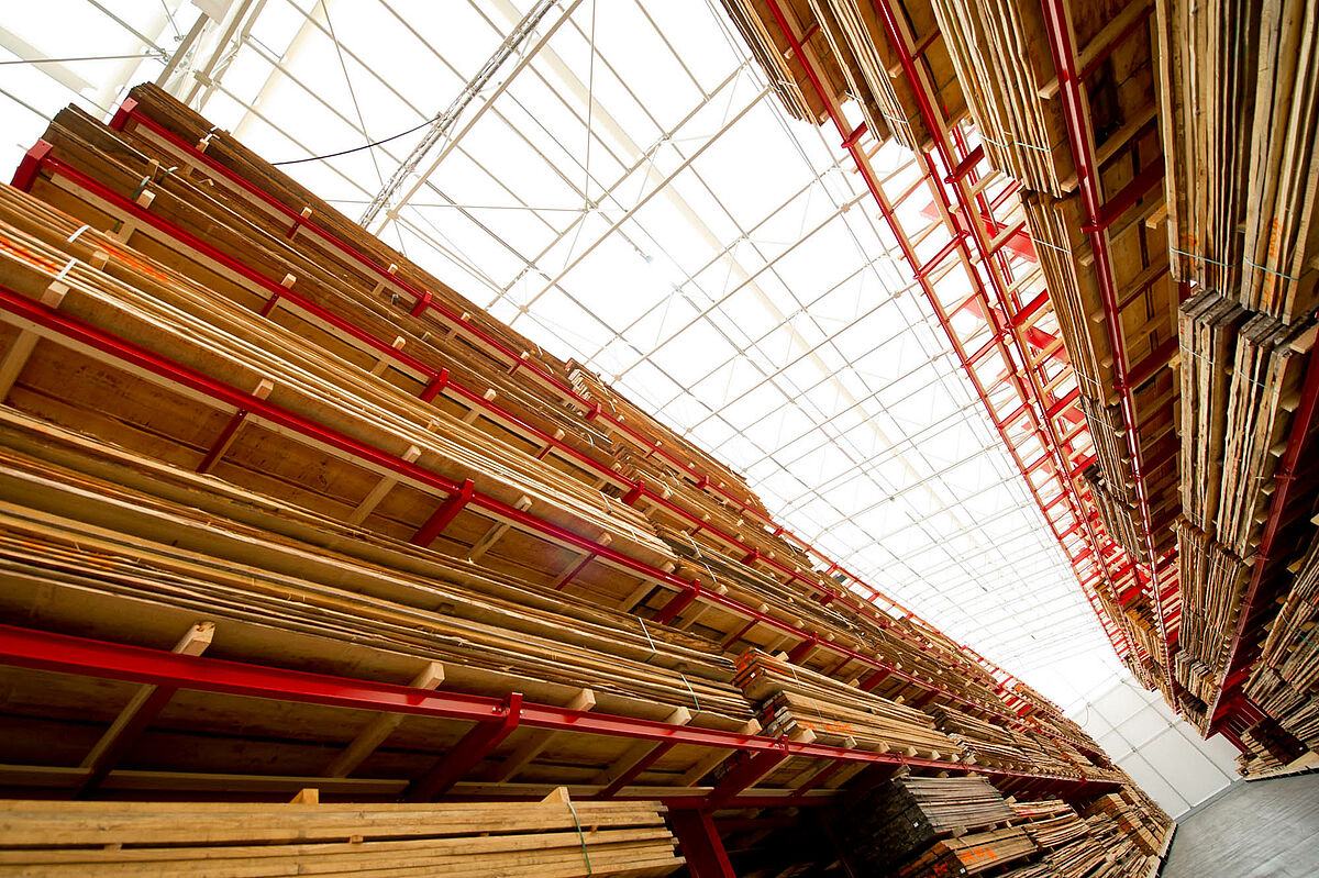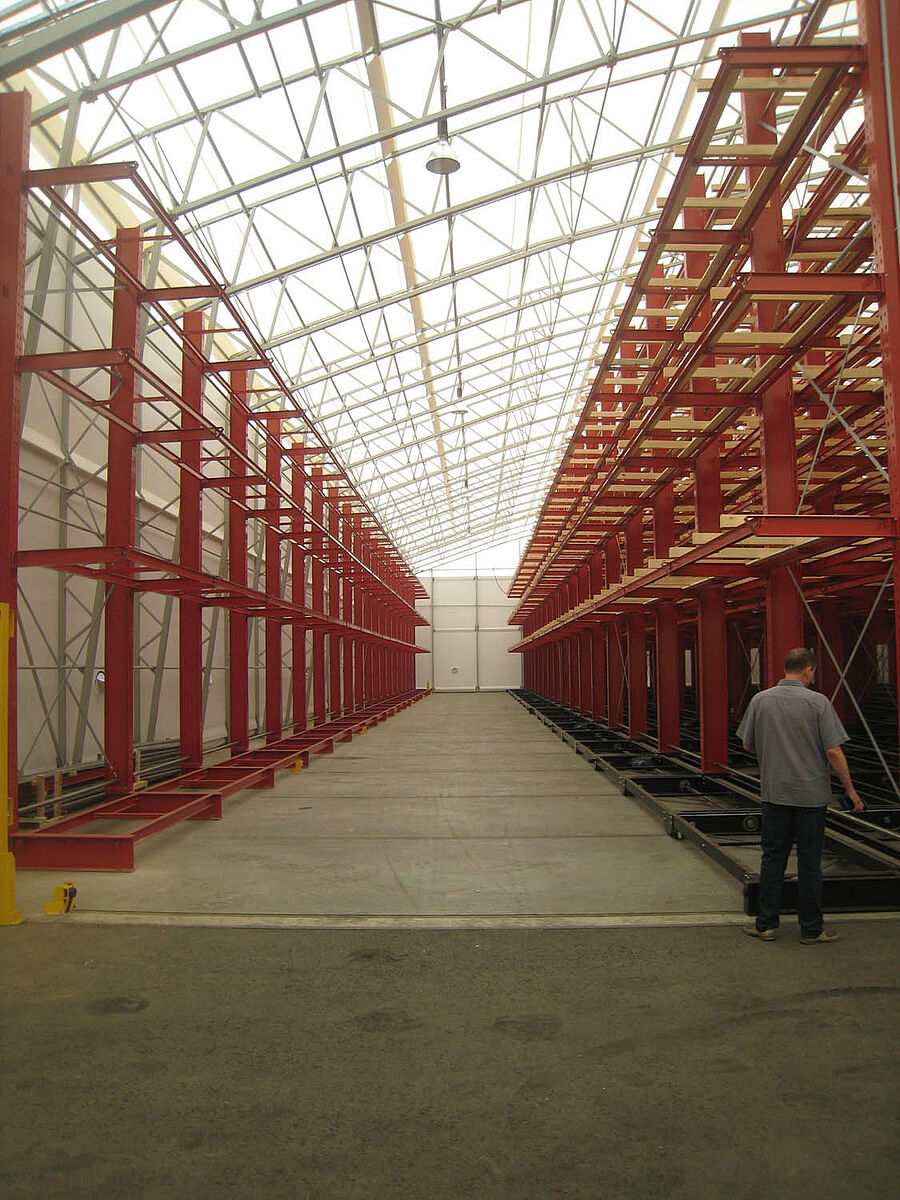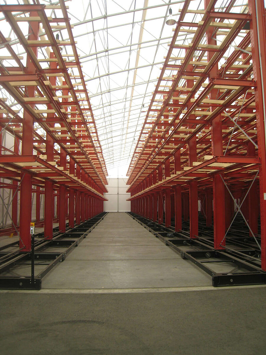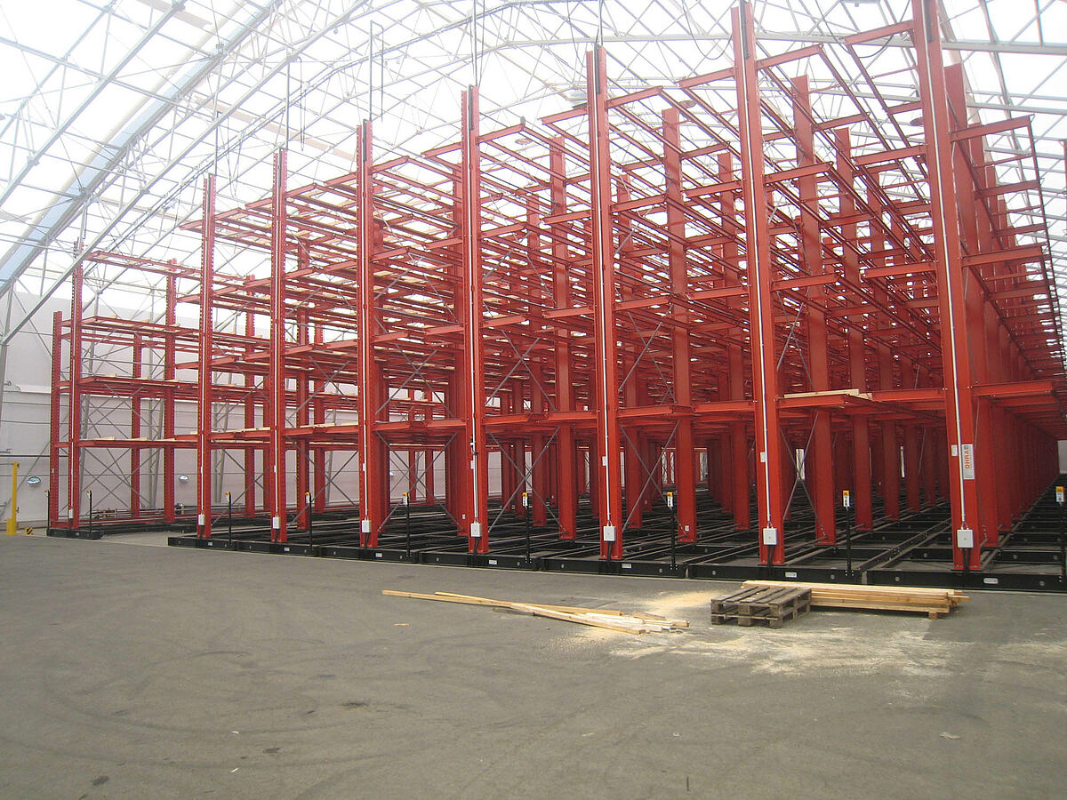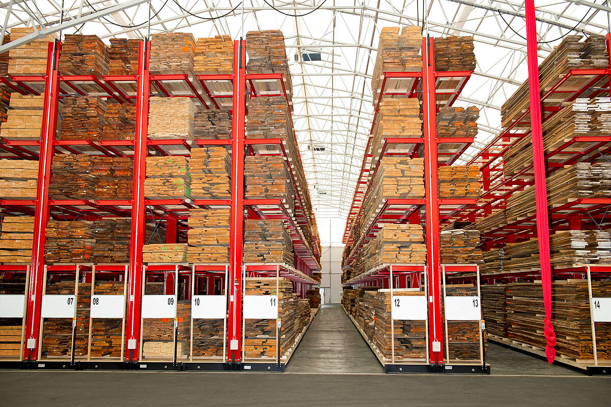 Firma M. Hechenblaickner Holzhandelsgesellschaft, vůdčí firma na trhu se dřevem v jižním Rakousku, zdvojnásobila konzolovými regály firmy OHRA kapacitu svého centrálního skladu v Grazu. K tomu jsou regály namontovány na pojízdných podvozcích - pro stohovač se otevře vždy pouze ta ulička, ze které má být odebráno zboží.