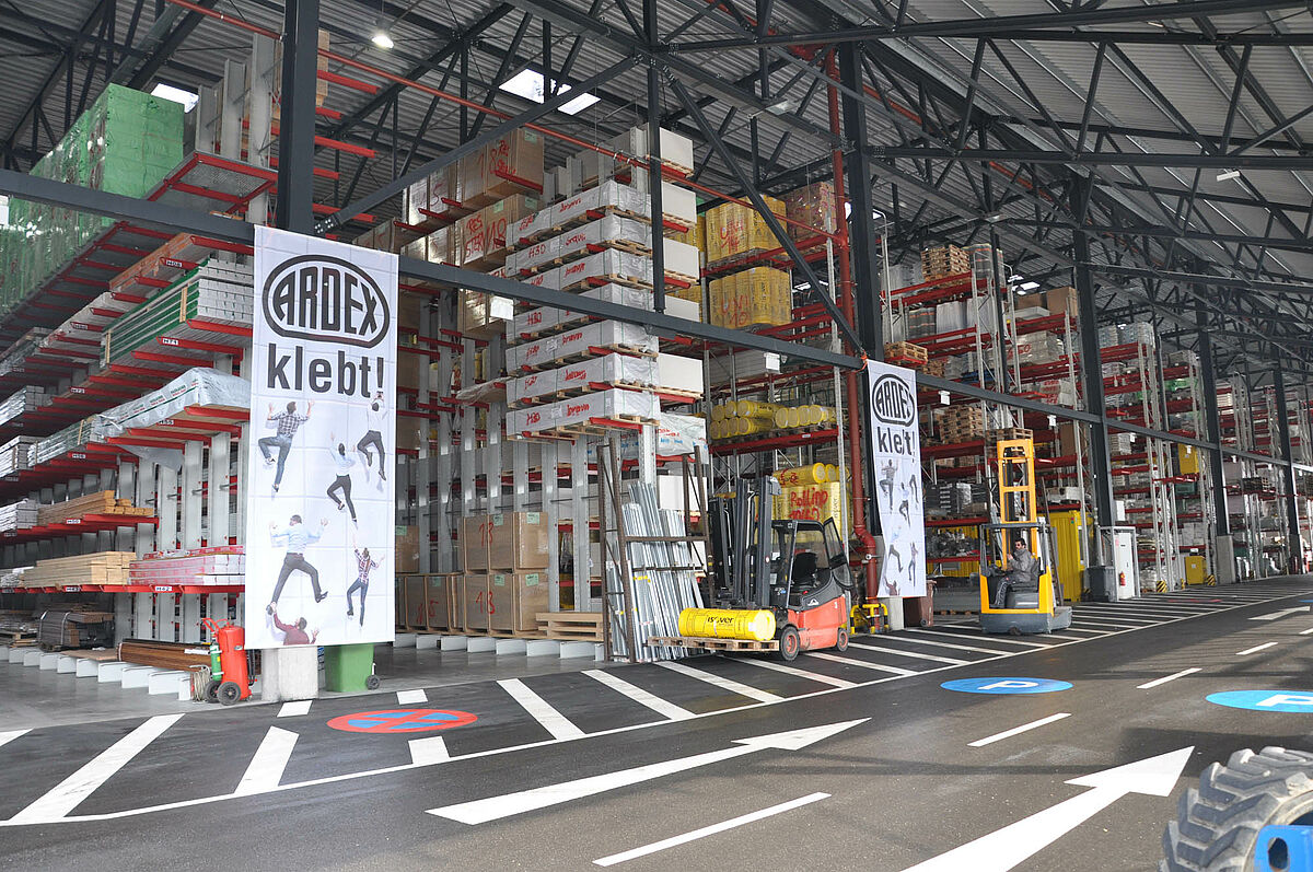 Zde je skladováno jak dlouhé zboží z úseků dřevo, pozemní stavby nebo realizace zahrad a krajinné stavby, tak i těžké zboží ze sortimentu výrobků z betonu a přírodního kamene. Dodatečně je zde uskladňováno i sezonní zboží z širokého sortimentu příslušenství, jako například travní sekačky.