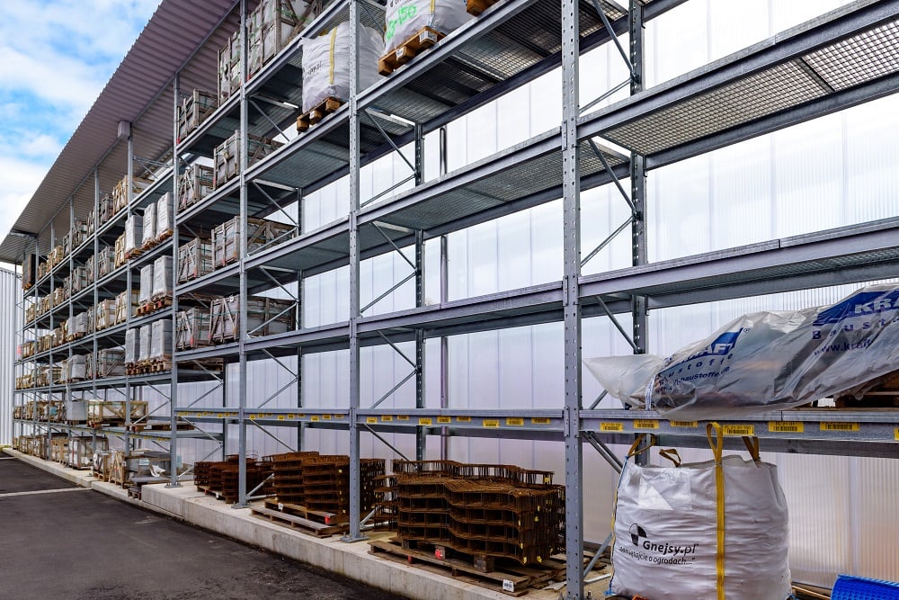 Pro uskladnění tak velkého množství nejrůznějšího materiálu vybavila firma Kraft nový venkovní sklad opět paletovými a konzolovými regály od společnosti OHRA. O jejich kvalitě se totiž už mohl tento prodejce stavebnin přesvědčit na svých dalších pobočkách, neboť společnost OHRA používá pro nosné prvky svých regálů výhradně jen plnostěnné ocelové profily. Ty jsou základem vysoké nosnosti a štíhlé konstrukce regálů. Paletové regály nabízejí plošné zatížení až 4 500 kg, stojany konzolových regálů unesou až 5 000 kg, každá jednotlivá konzola pak až 1 000 kg.