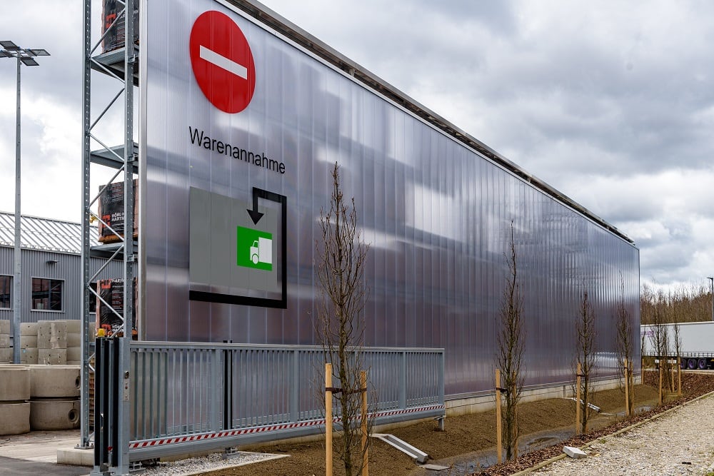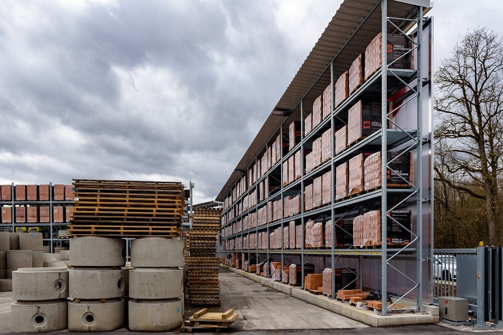 Firma Kraft Baustoffe, podle vlastních údajů v současné době největší prodejce stavebninami v prostoru Mnichova, zrealizovala venkovní sklad své nové pobočky v obci Höhenkirchen-Siegertsbrunn, a to využitím konzolových a paletových regálů od společnosti OHRA. Nejenže jsou tyto regály zastřešené, ale vzhledem k tomu, že musela být splněna přísná nařízení o ochraně před hlukem, jsou opatřeny rovněž obložením zadních stěn, které slouží jako protihlukový prvek.