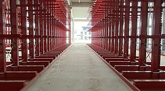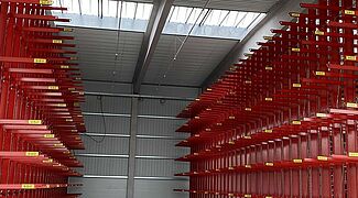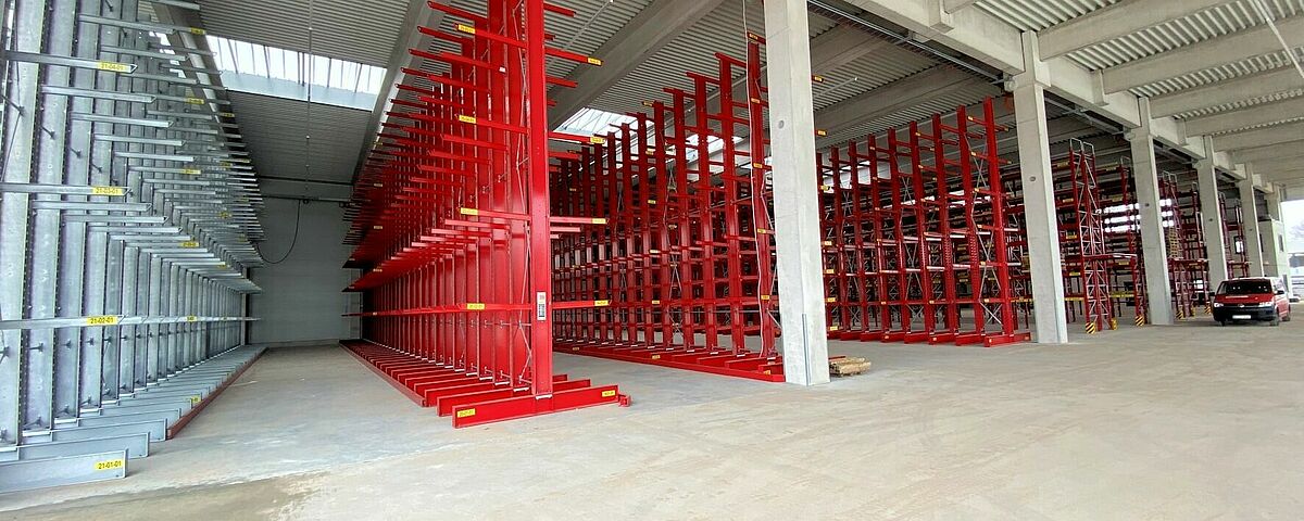 Vyšší skladovací kapacity, šetrnější skladování stavebních materiálů a dřeva, kratší přepravní cesty – rozhodnutí prodejce stavebních materiálů Mayrose přejít v novém areálu v Lingenu z blokových skladů na regály OHRA vedlo k vytvoření přehledného a výrazně efektivnějšího skladu. Krytá hala nabízí přibližně 1 800 skladovacích míst v šesti řadách paletových regálů a třech řadách konzolových regálů. Maximální výška skladu 7,4 m, která je pro obchod se stavebními materiály poměrně neobvyklá, umožňuje vysoké využití dostupného prostoru.