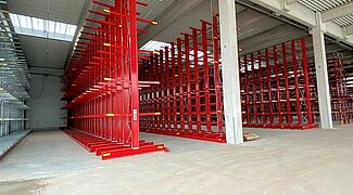 V nově zbudovaném skladu, který je pro soukromé zákazníky mnohem atraktivnější, se nyní zboží skladuje v otevřené hale v konzolových a paletových regálech dlouhých přes 30 metrů. Některá oddělení paletových regálů jsou vybavena mřížovými rošty nebo dřevotřískovými deskami, aby bylo možné vedle paletovaného zboží skladovat i zboží v krabicích, pytlích nebo jiných obalech.