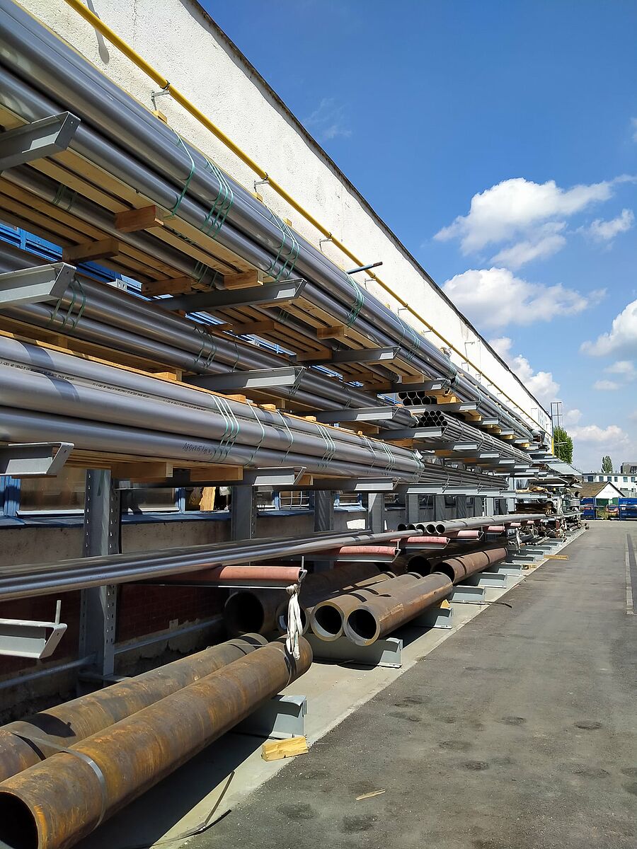 Regálový systém od společnosti OHRA dokázal přesvědčit zejména svou odolností a stabilitou: Protože společnost OHRA vyrábí všechny nosné prvky regálů výlučně z plnostěnných ocelových profilů, nabízejí vysokou nosnost při zachování štíhlé konstrukce. Společnost OHRA navíc upravila regály přesně na míru potřebám firmy Mebatex, takže v nich lze bezpečně a efektivně skladovat nejrůznější trubky. Společnost OHRA k nim ve venkovním areálu nainstalovala dvě řady jednostranných konzolových regálů o celkové délce více než 92 metrů.