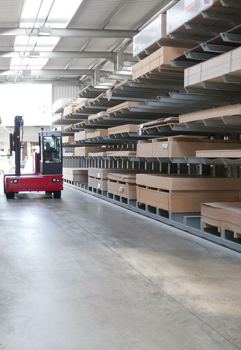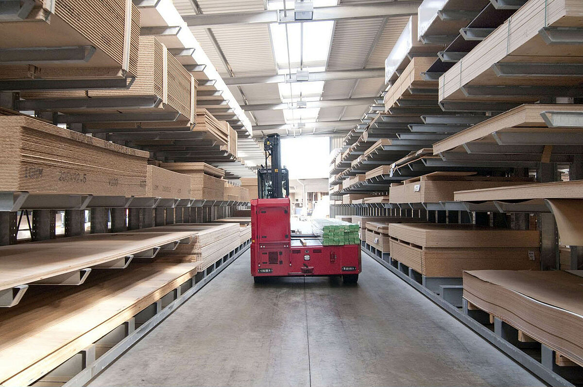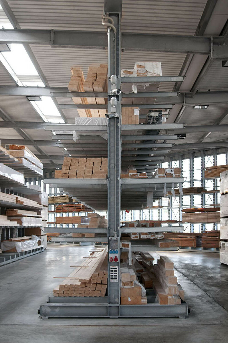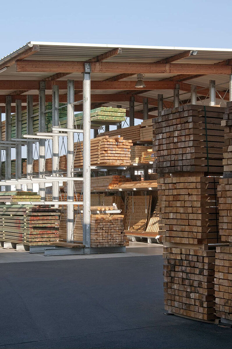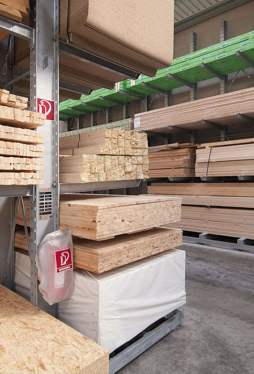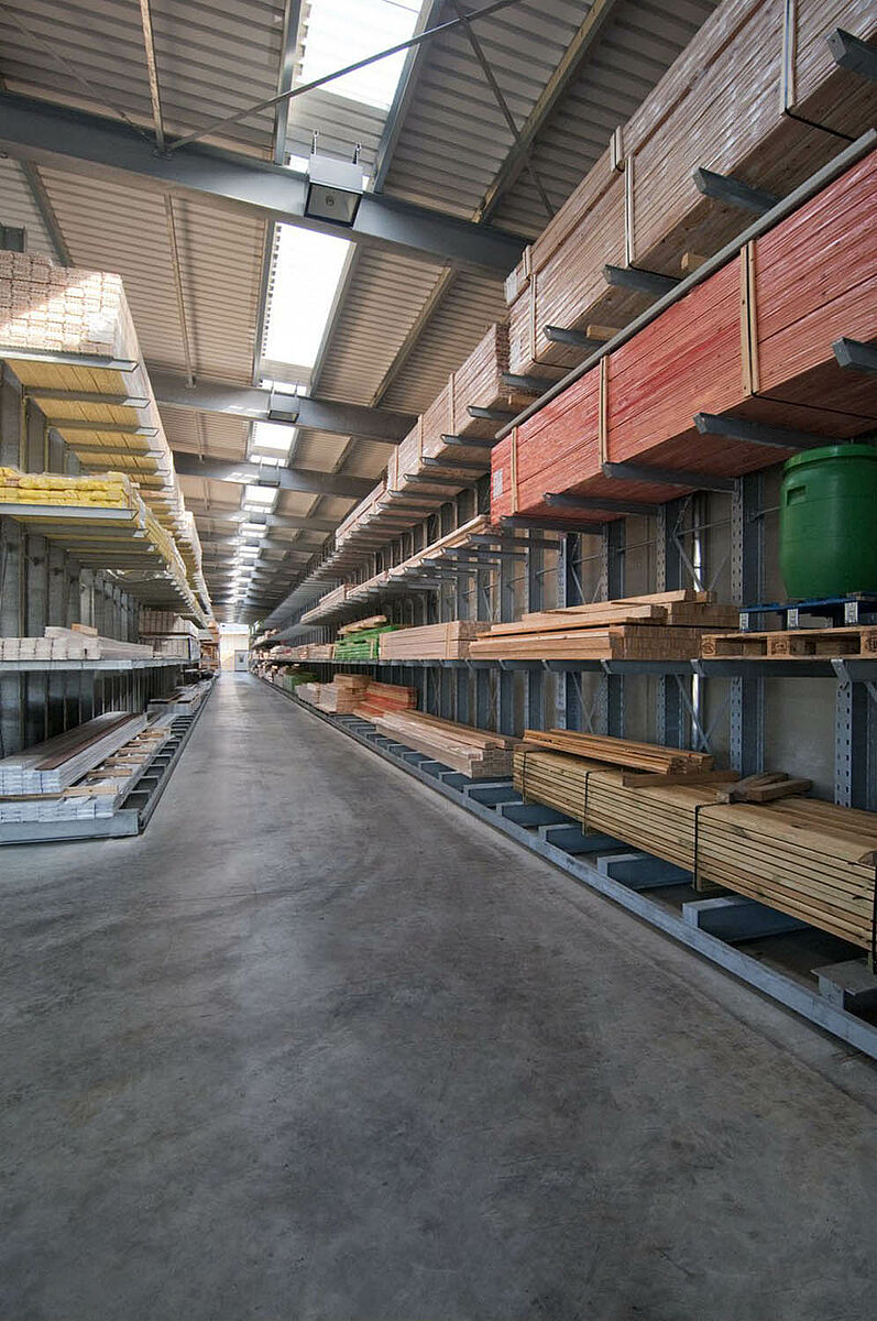 V Siegburgu sídlící Schyns GmbH nabízí jako velkoobchod a maloobchod rozsáhlý sortiment dřeva pro privátní zákazníky a řemeslníky – od konstrukčního dřeva až po zahradní domek. Předzásobení s dřevěnými artikly se děje v regálovém skladě, který byl po více než 20 let trvale rozšiřován. Tak vznikla během let z jednotlivých regálových řad kompletní hala, která byla později ještě zdvojena. Tak mohl růst kompletní sklad společně s firmou.