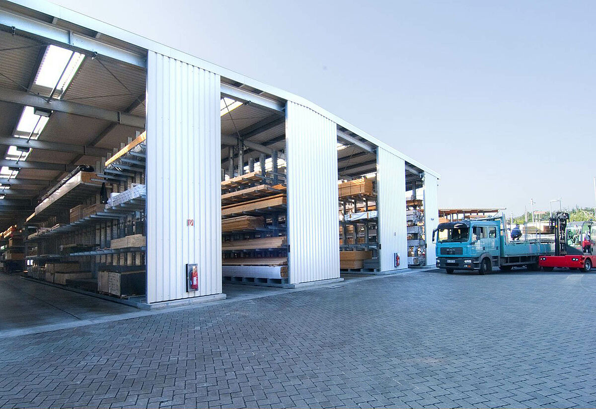 Regálová hala pro obchod se dřevem