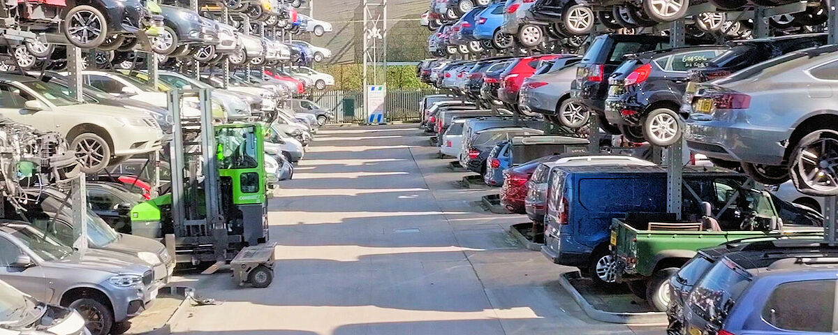 Společnost Silverlake Automotive Recycling, Hampshire, skladuje osobní automobily, SUV a dodávky do konzolových regálů od společnosti OHRA, aby měla neustále přímý přístup k co největšímu počtu vyřazených vozidel. Díky regálům, které jsou vysoké přes 8 metrů, lze na sebe bezpečně „naskládat“ pět vozidel o hmotnosti až 2 tuny. Uličky regálů jsou rovněž vybaveny vodicími kolejnicemi, aby bylo možné stará vozidla ukládat a vykládat pomocí bočního nakladače, což znamená, že uličky mezi regály mohou být úzké a do prostoru skladu lze umístit více regálů. Silverlake tak může v areálu uskladnit přibližně 2 500 vyřazených vozidel.
