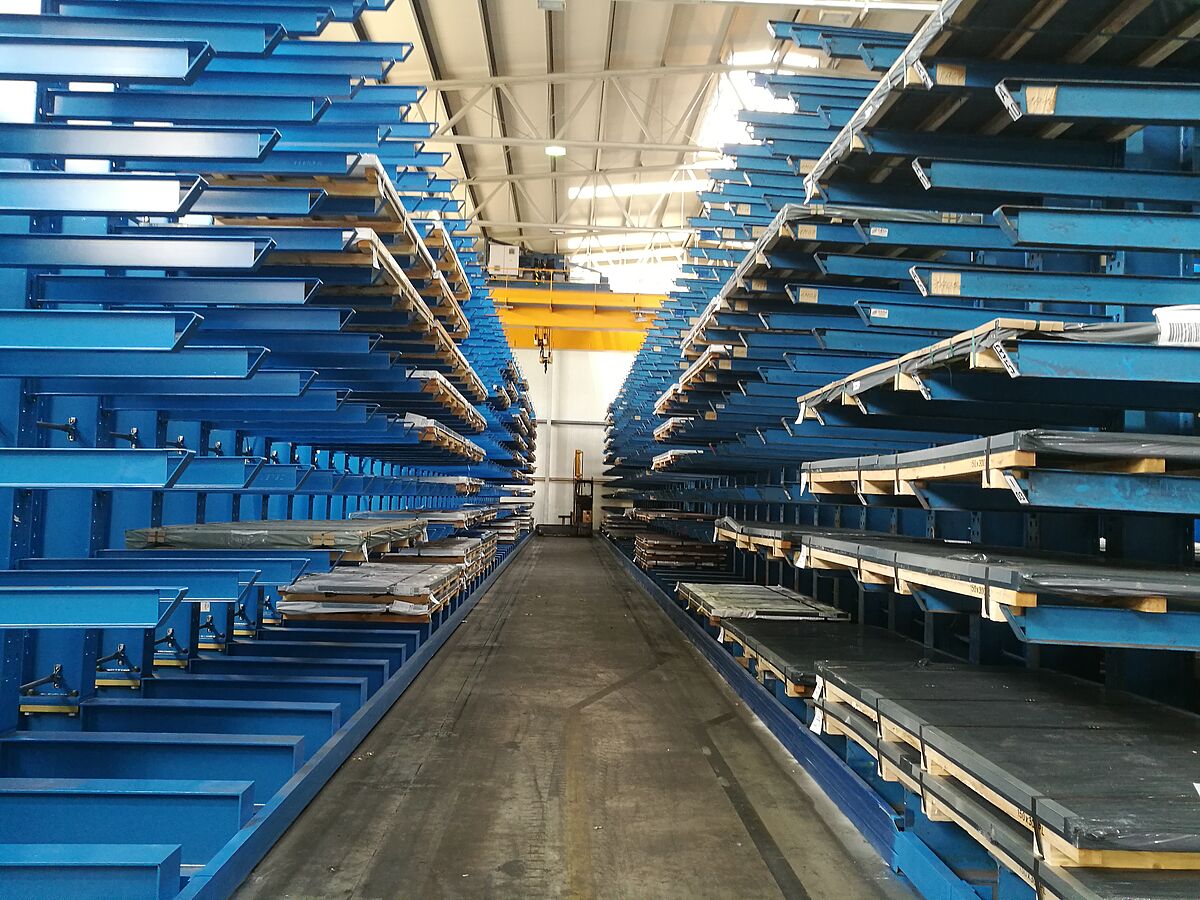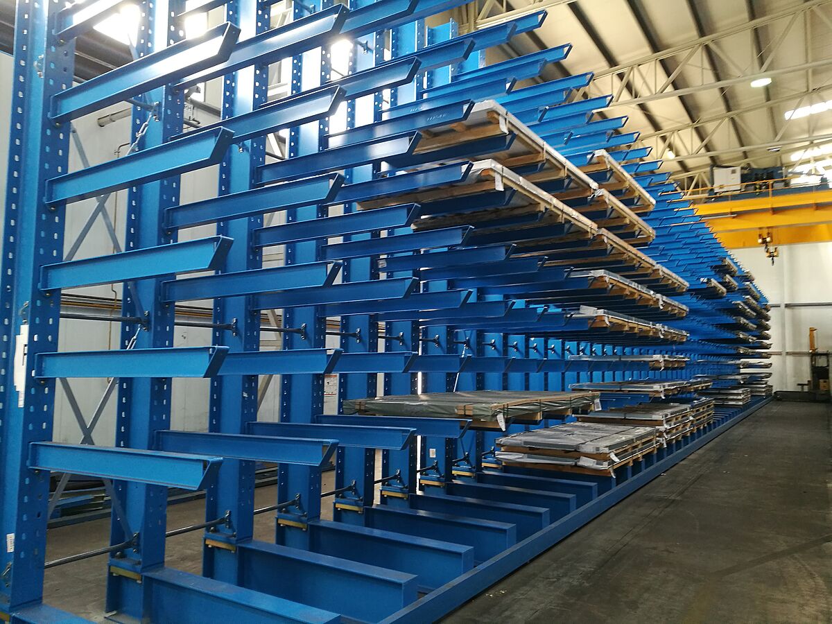 thyssenkrupp si pro svůj sklad se čtyřimi uličkami vybrala konzolové regály od společnosti OHRA: Zde jsou konzolová ramena zavěšena a při nárazu se mohou vychýlit – zabrání se tak poškozením na zboží a samotném regálu a minimalizují se náklady na údržbu. Kromě toho regály OHRA díky své konstrukci z plnostěnných ocelových profilů válcovaných za tepla zajišťují vysokou nosnost. 6 metrů vysoké regály instalované v thyssenkrupp Materials disponují deseti policemi. Každé konzolové rameno, dlouhé 1 500 mm, unese až 1 400 kg. Vodicí kolejnice na podstavcích umožňují použití vysokozdvižného vozíku do úzké uličky – díky tomu bylo možné výrazně vylepšit využití plochy skladu a zvýšit skladovací kapacity.