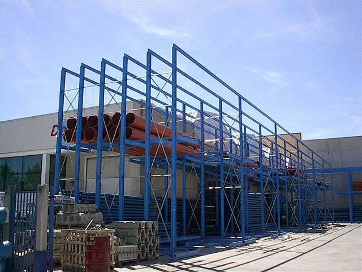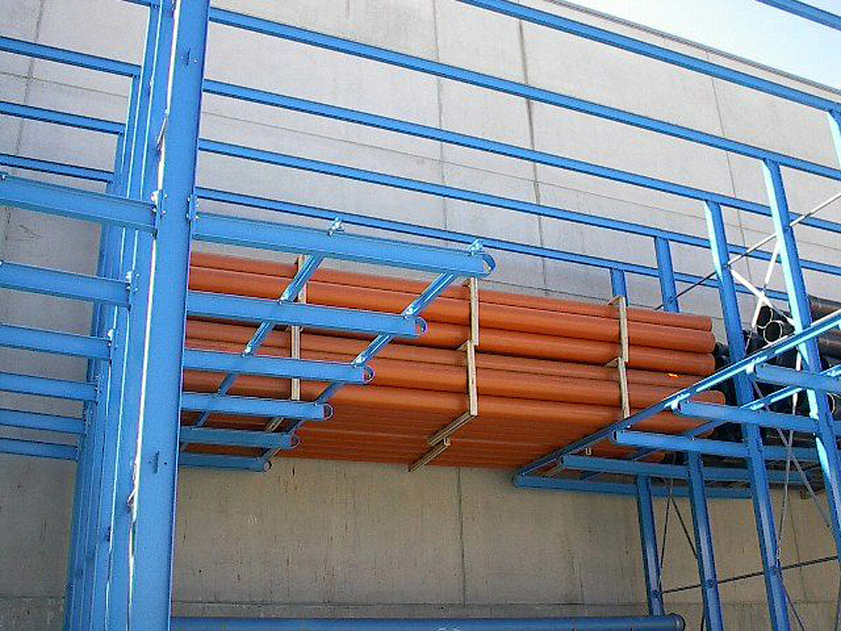 Jako doplněk k pojezdovému regálu dodala a montovala OHRA dodatečně robustní konzolové regály. Zde se skladují ty druhy zboží, které nejsou tak často potřeba. Svazky trubek jsou zde uloženy v několika úrovních nad sebou. Díky konzole délky až 2.500 mm zde může zákazník v jedné úrovni skladovat dva balíky trubek za sebou.